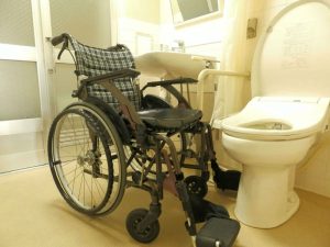 車椅子からベッドやトイレ等へ、逆にベッドやトイレ等から車椅子へ移乗する際は、車椅子にブレーキを掛ける